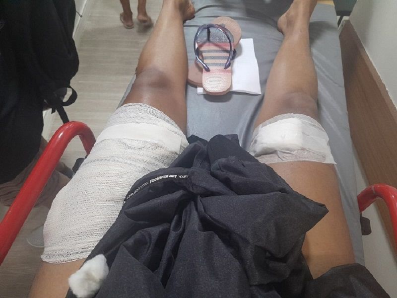 O tiro atingiu duas pernas, e um projétil ainda está alojado no corpo.