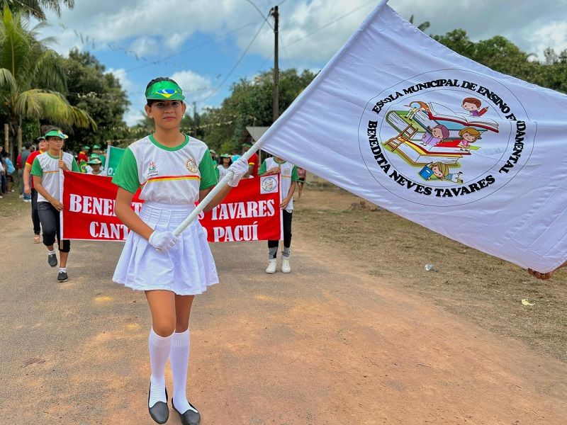 Neste sábado, 7 de setembro, data em que se comemora a Independência do Brasil, estudantes das escolas municipais dos distritos de Santa Luzia do Pacuí, Tracajatuba I e São Joaquim do Pacuí participaram do Desfile Cívico 2024 com o tema “Macapá canta: o jeito de ser do povo daqui!”.