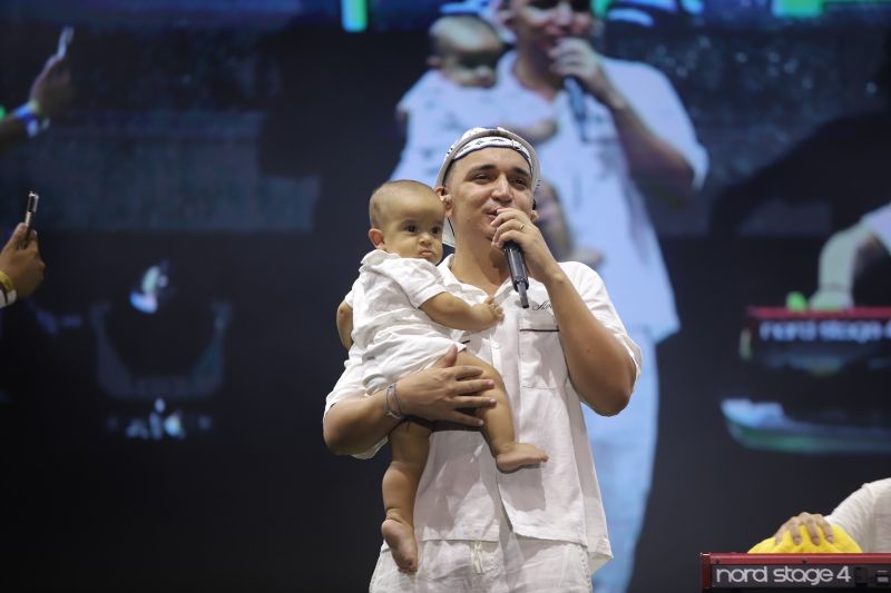 “Este é o primeiro show que meu filho e minha esposa estão vindo em Macapá, e fico feliz de ter eles aqui comigo dividindo toda essa energia com vocês e as primeiras horas de 2025”, declarou o cantor, emocionado.